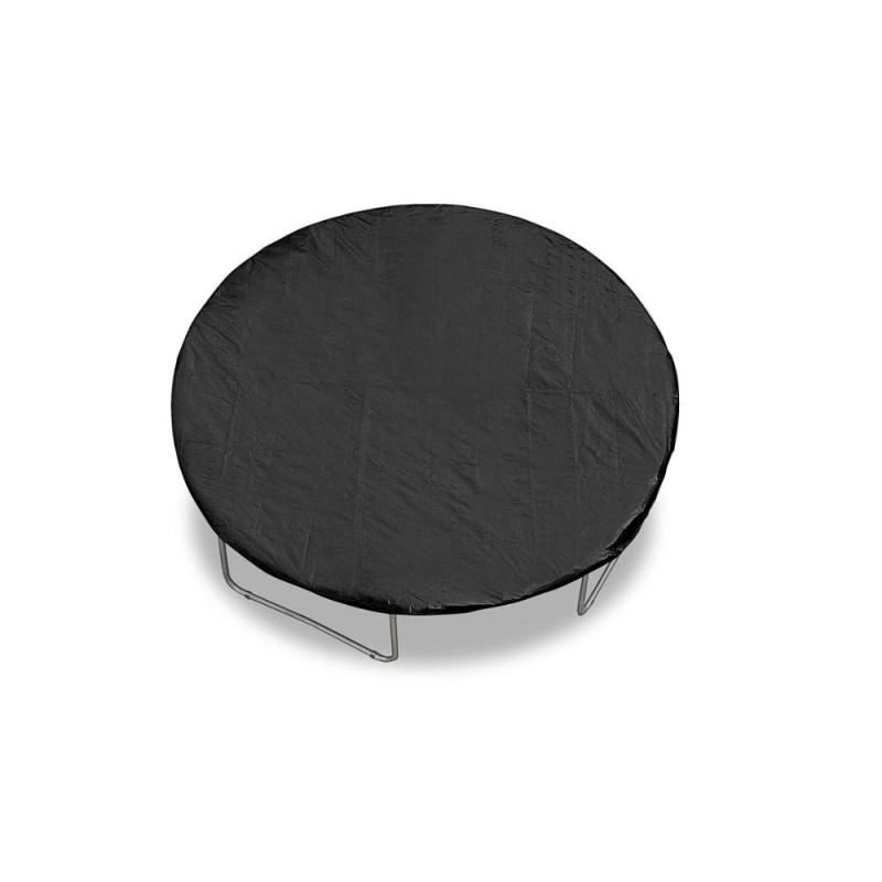 Bâche de protection pour trampoline avec trou d'évacuation au centre pour éviter l'accumulation d'eau. Cette bâche universelle s'adapte à tous les trampolines ronds, selon les tailles compatibles détaillées ci-dessous. Des crochets élastiques sont dispersés tout autour de la bâche pour la fixer au cadre.