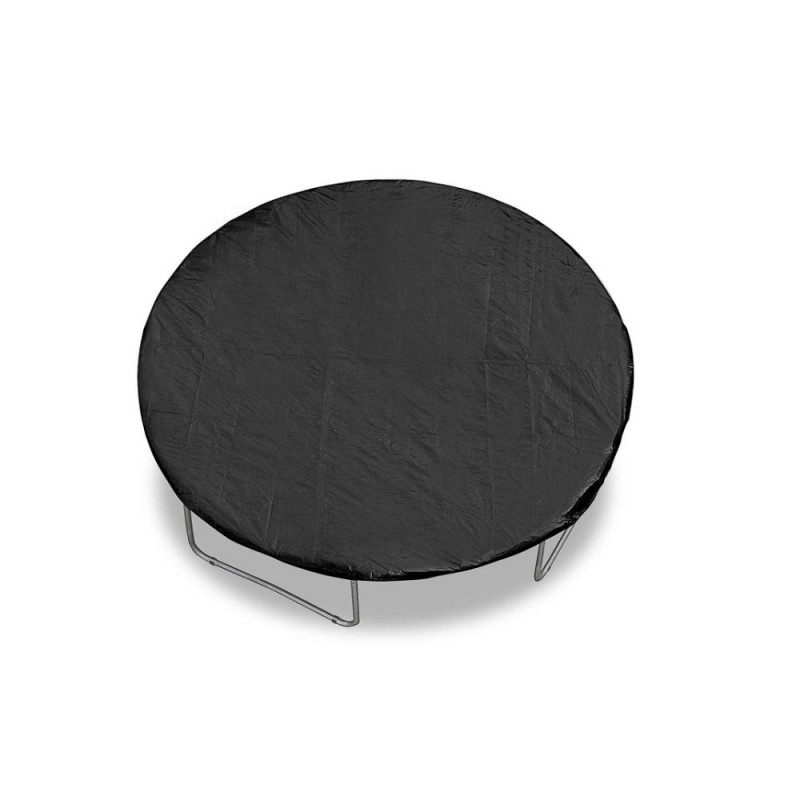 Bâche de protection pour trampoline avec trou d'évacuation au centre pour éviter l'accumulation d'eau. Cette bâche universelle s'adapte à tous les trampolines ronds, selon les tailles compatibles détaillées ci-dessous. Des crochets élastiques sont dispersés tout autour de la bâche pour la fixer au cadre.