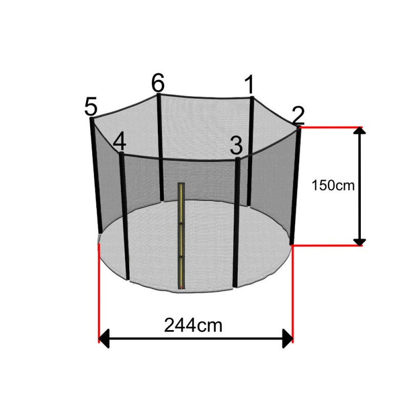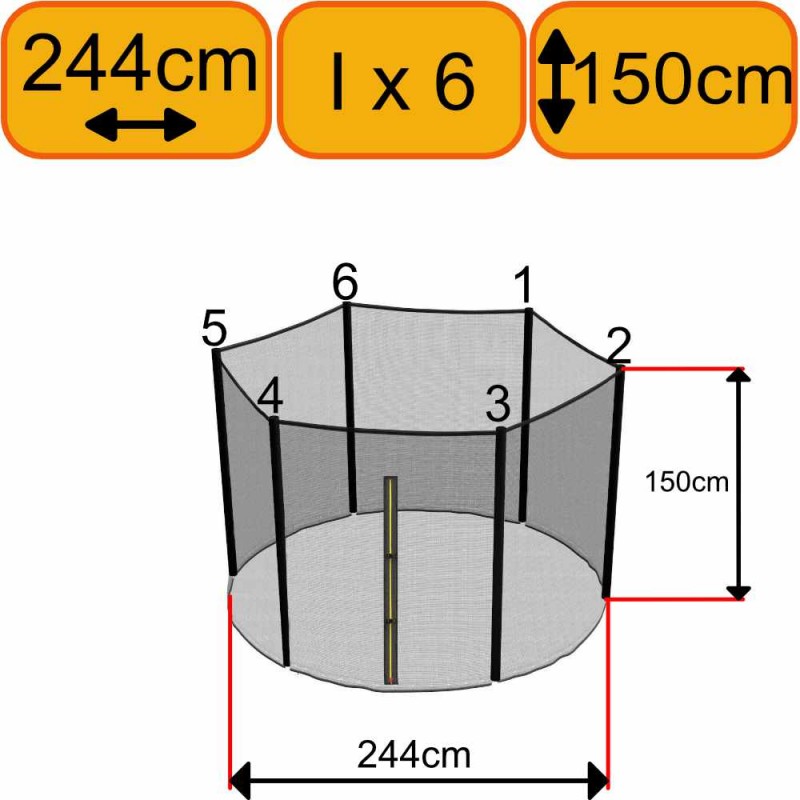 Ce filet convient aussi pour les trampoline d'un diamètre de 250 cm. Aussi souvent les trampoline 250 mesure en réalité 244cm.