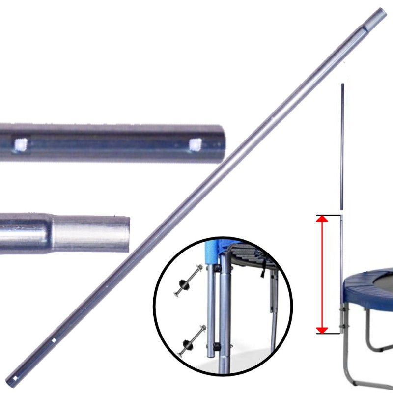 Fixer la partie basse du montant au trampoline puis emboîter la partie haute. Compléter le montant avec mousse de protection puis enfiler le filet par dessus le tout.