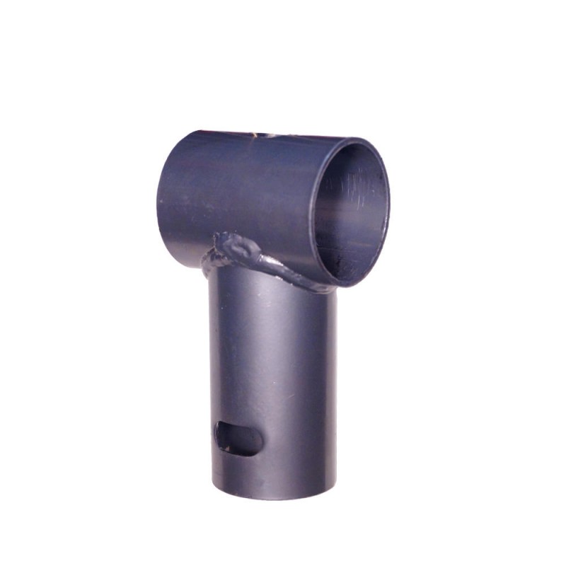 Le T de jonction permet de faire la liaison entre le pied et le cadre du trampoline. Il existe en plusieurs tailles et forme selon la marque et modèle de trampoline. Le T de jonction est couvert d'une peinture pour éviter les effets de corrosion.