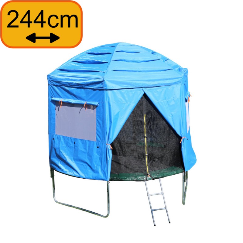 la tente cabane pour trampoline, où l'aventure et le jeu rencontrent le confort et la sécurité ! Cette structure polyvalente offre un abri spacieux et coloré qui s'installe facilement sur votre trampoline, créant ainsi un espace ludique et protégé du soleil pour vos enfants. Avec ses parois en tissu clair doublé tissu couleur argent pour limiter les UV et la chaleur ainsi que ses fenêtres en filet pour une ventilation optimale, cette cabane transforme votre trampoline en un refuge magique où les enfants peuvent laisser libre cours à leur imagination.