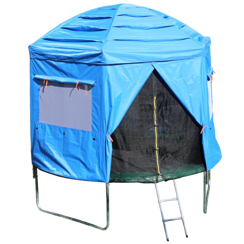 la tente cabane pour trampoline, où l'aventure et le jeu rencontrent le confort et la sécurité ! Cette structure polyvalente offre un abri spacieux et coloré qui s'installe facilement sur votre trampoline, créant ainsi un espace ludique et protégé du soleil pour vos enfants. Avec ses parois en tissu clair doublé tissu couleur argent pour limiter les UV et la chaleur ainsi que ses fenêtres en filet pour une ventilation optimale, cette cabane transforme votre trampoline en un refuge magique où les enfants peuvent laisser libre cours à leur imagination.